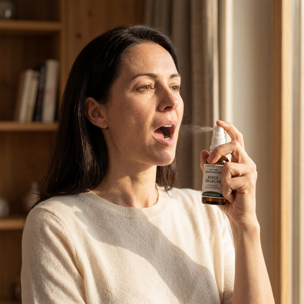 - 1–2 Sprühstöße direkt in den Mund – schnelle Aufnahme über die Mundschleimhaut, ideal für unterwegs.